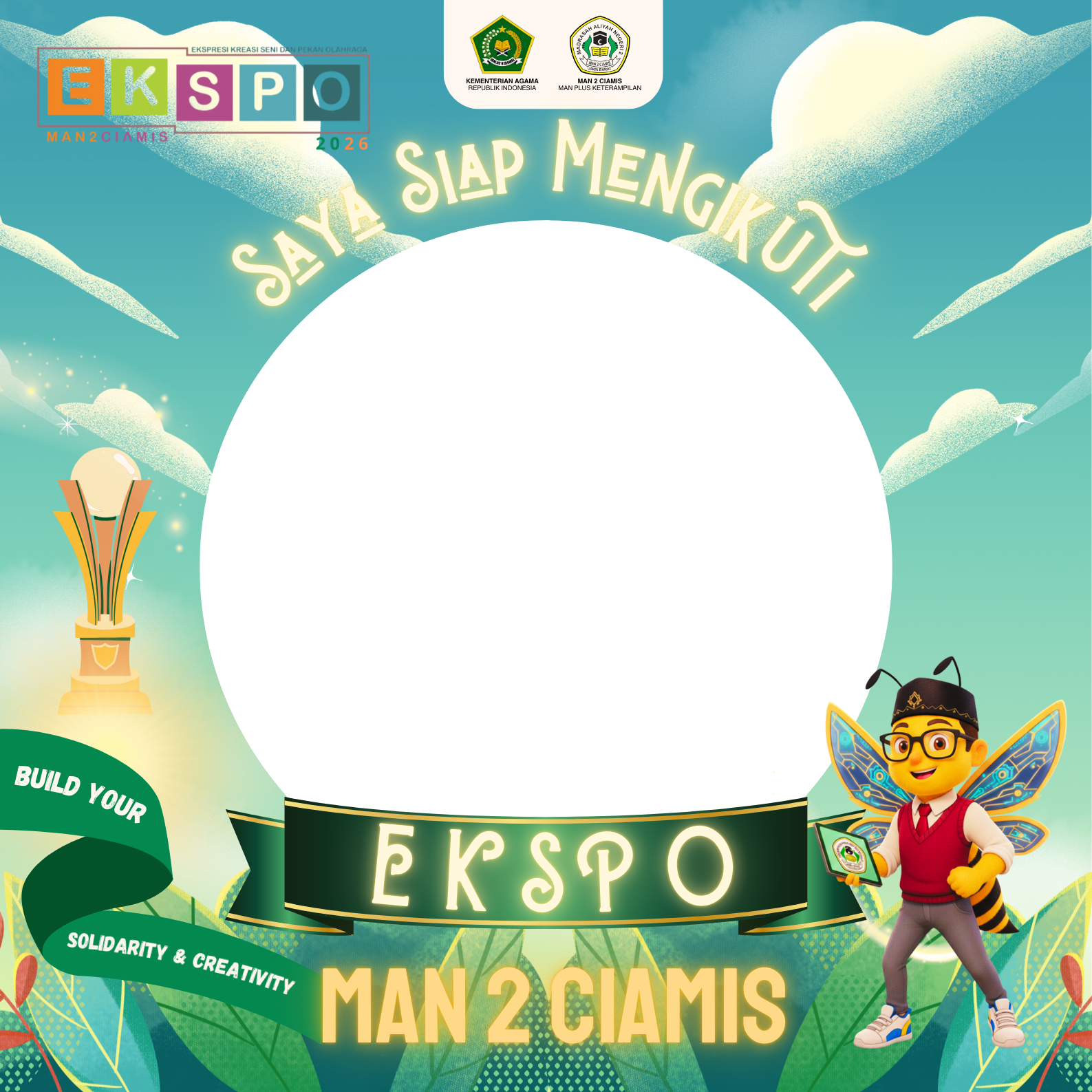 Saya Siap mengikuti EKSPO (Ekspresi Kreasi Seni dan Pekan Olahraga) MAN 2 Ciamis Tahun 2026. ✨Build Your Solidarity and Creativity ✨ Perlombaan Tingkat MTs/SMP Sederajat Wilayah Priangan Timur dan Sekitarnya. Ayo semangat mengikuti perlombaan bergengsi dari MAN 2 Ciamis. 🏅